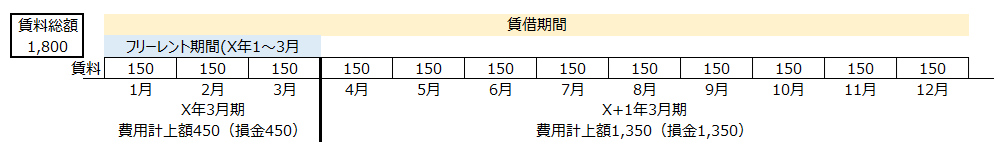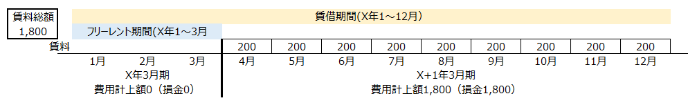 (2)フリーレント期間に賃料総額を賃借期間で按分した金額を費用計上した場合
